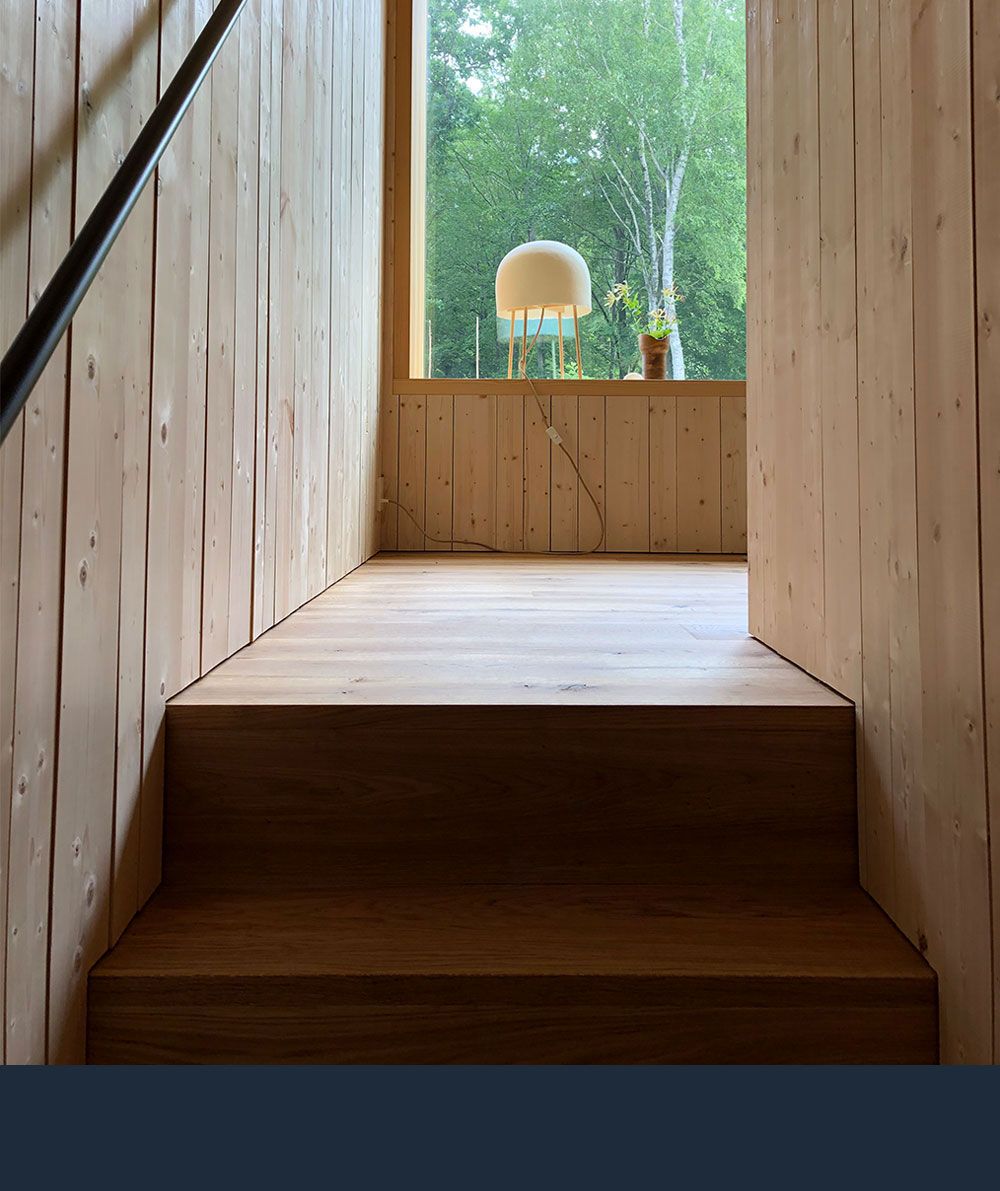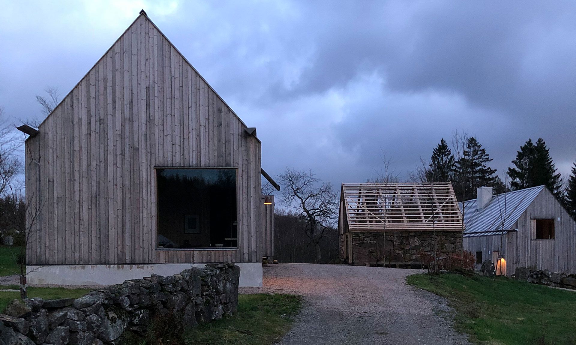 Petra Gipp Arkitektur är en av Sveriges mest intressanta samtida arkitekter och har med stor känslighet för platsen, ljuset och den omgivande naturen ritat två nya byggnader som ligger i fotspåren av de gamla; mangårdsbyggnaden och ladan. Förutom betonggolven är de nya husen helt byggda med svenskt trä som lämnats obehandlat för att med tiden patineras och åldras vackert.